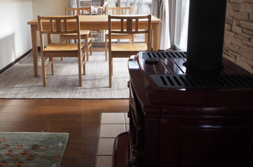 チェアーはシンプルな2本の背もたれのダイニングチェアーと、縦のラインがクラシックな雰囲気のものを2脚ずつ。