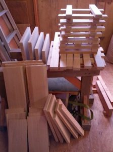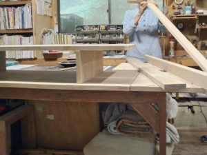 木の堅いところ、粘りのあるところなど見極めながら、部材を切り出します。家具作りで最も緊張するところです。