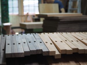 木の堅いところ、粘りのあるところなど見極めながら、部材を切り出します。家具作りで最も緊張するところです。