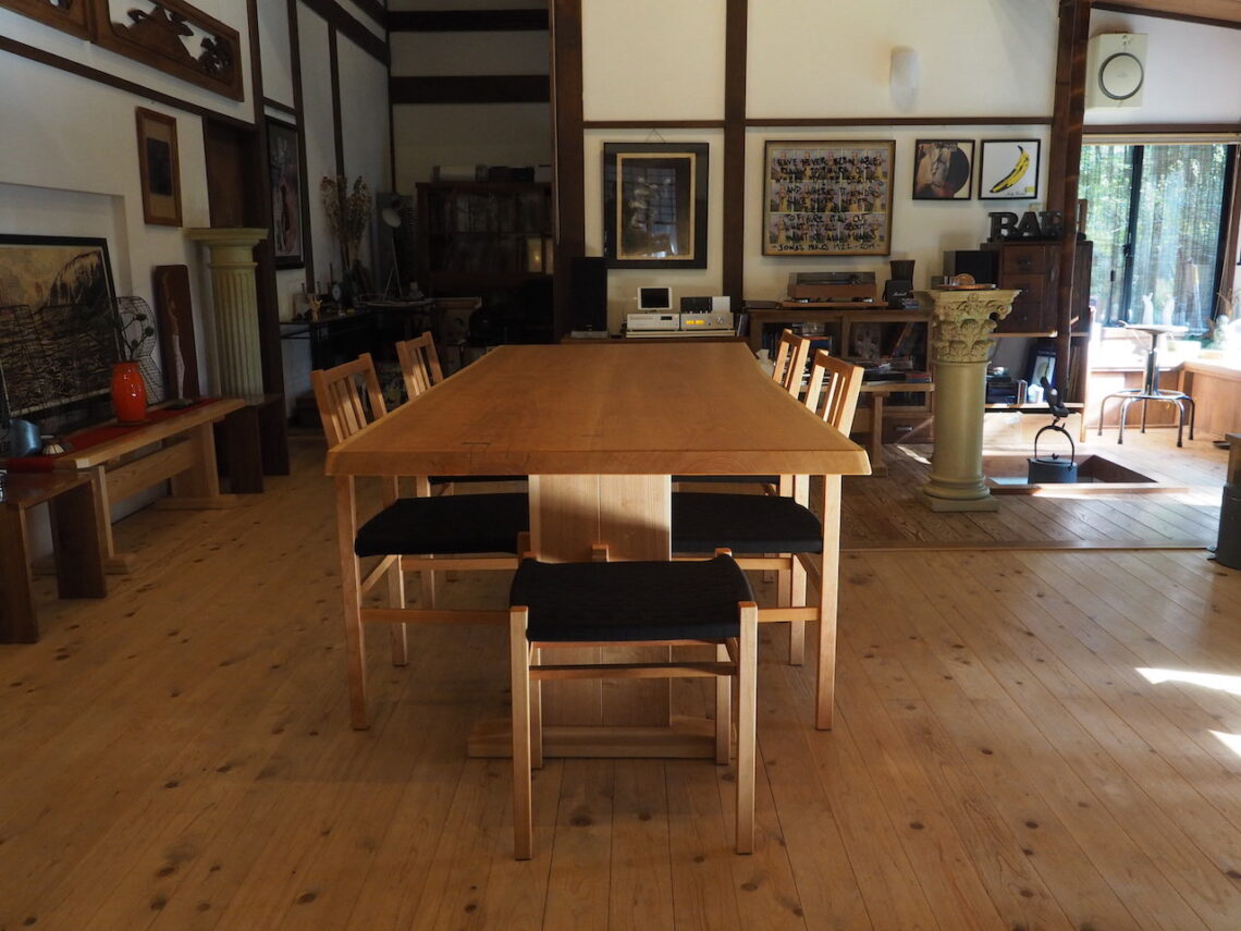大きなチェリーの耳付きテーブル天板とチェアーたちを